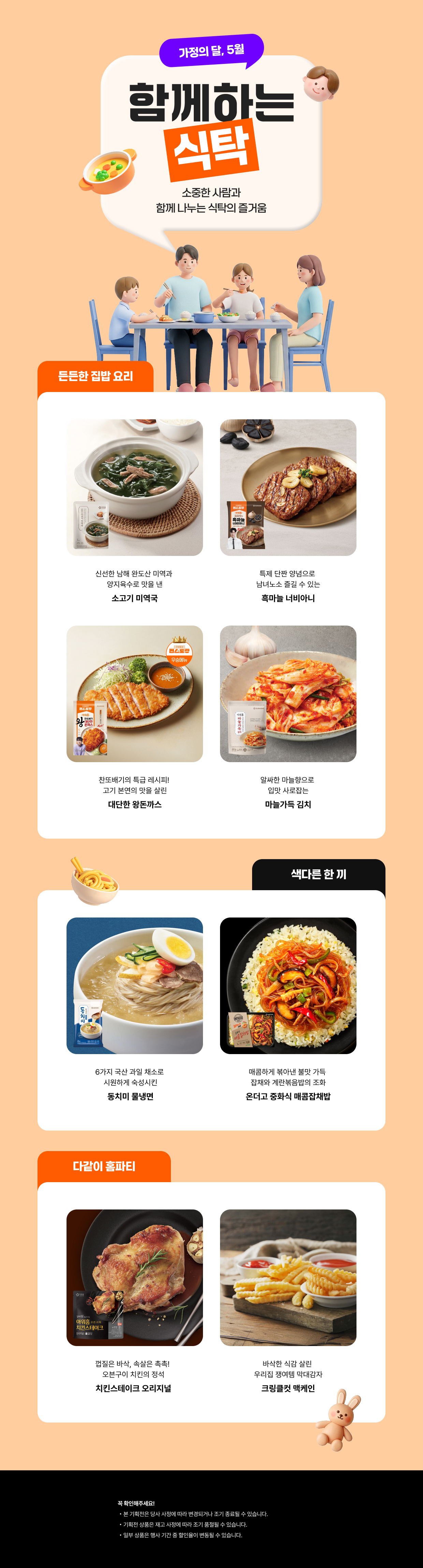 우삼겹,불닭,차돌깍두기,비빔밥,김치제육,소불고기,로제떡볶이 각 2입