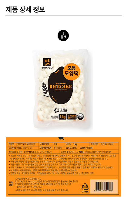 | 상품명 | [행복한맛남] 모듬모양떡 1kg |